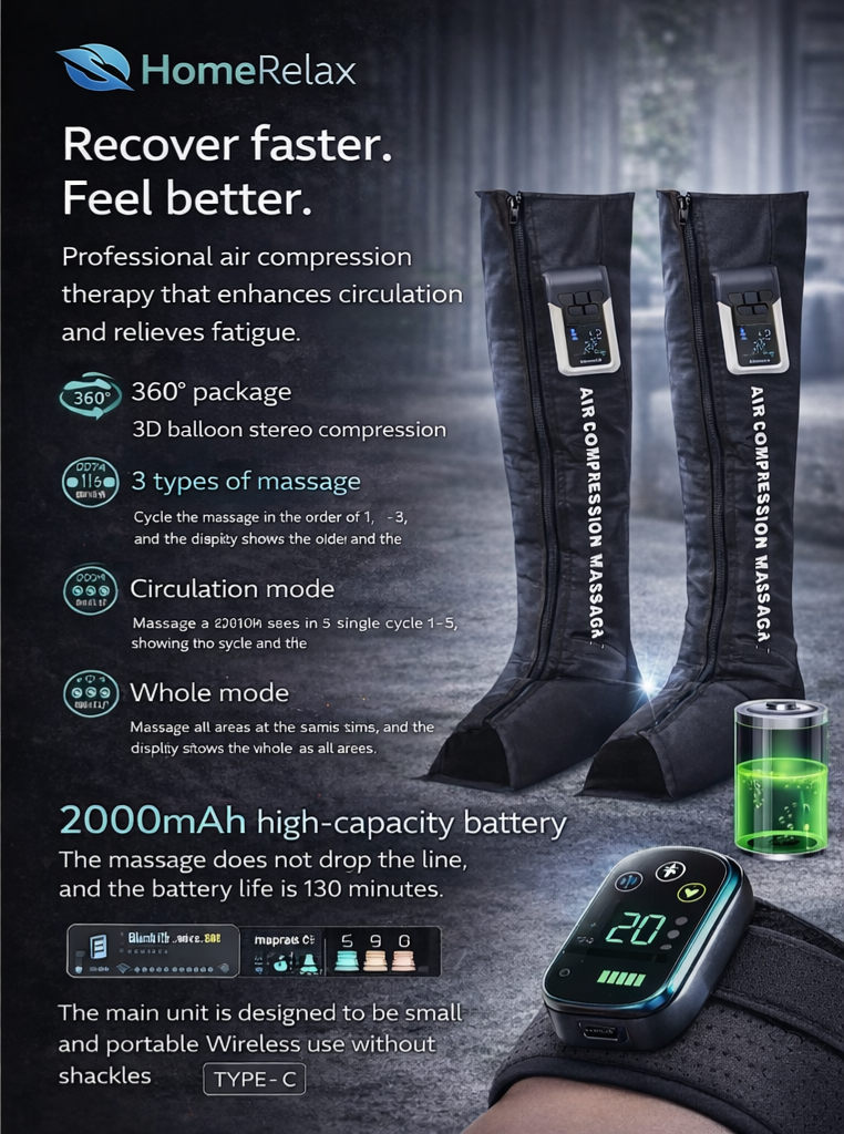 Professional Air Compression Recovery System for Enhanced Circulation and Sequential Training in Foot and Leg Recovery Boots